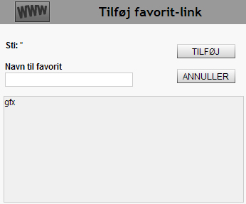 Nederst er listen over de foretrukne mapper du har tilføjet. Her har du mulighed for at slette en genvej.