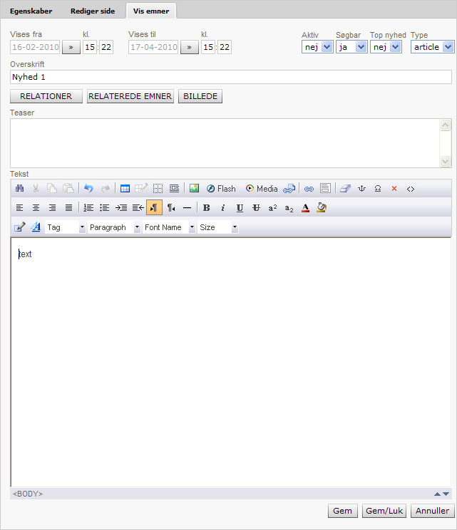 Dette modul kan anvendes til at udgive nyheder, pressemeddelelser eller beskeder på sin hjemmesiden. Disse vises i en nyhedsboks et bestemt sted på siden.